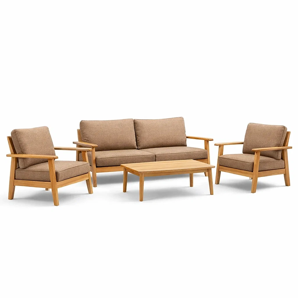 Poids : Total 70 kg ; Fauteuil 15 kg chacun, Canapé 30 kg, Table basse 10 kg