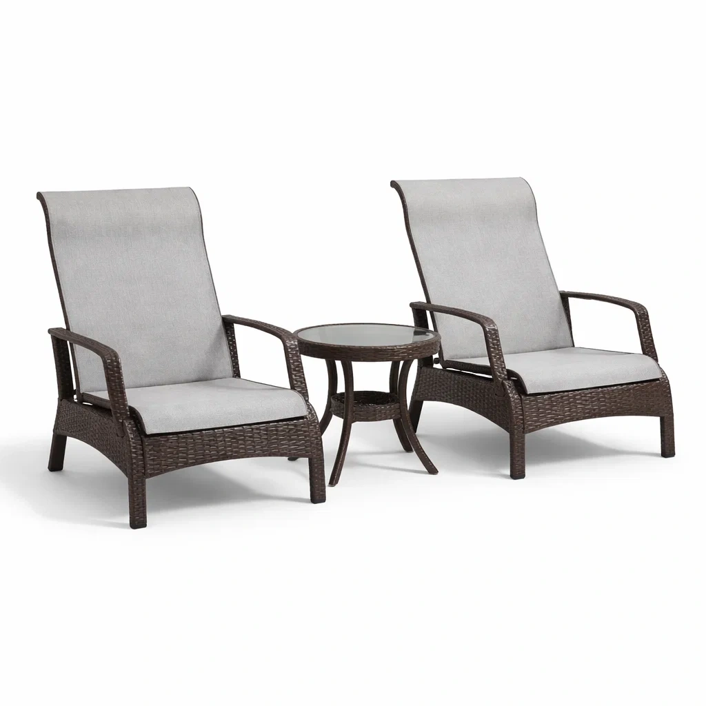 Ensemble de détente avec chaises longues en rotin et table en verre